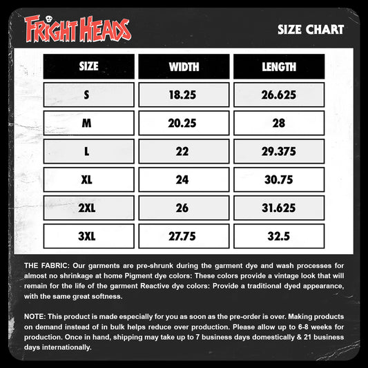 We dug through the crypt and found a handful of leftover pieces from past FrightHeads drops. These are the last remaining sizes and extras that somehow survived the first wave. Everything is in stock and ready to ship, but quantities are extremely limited. If you missed them the first time… this is your final chance.